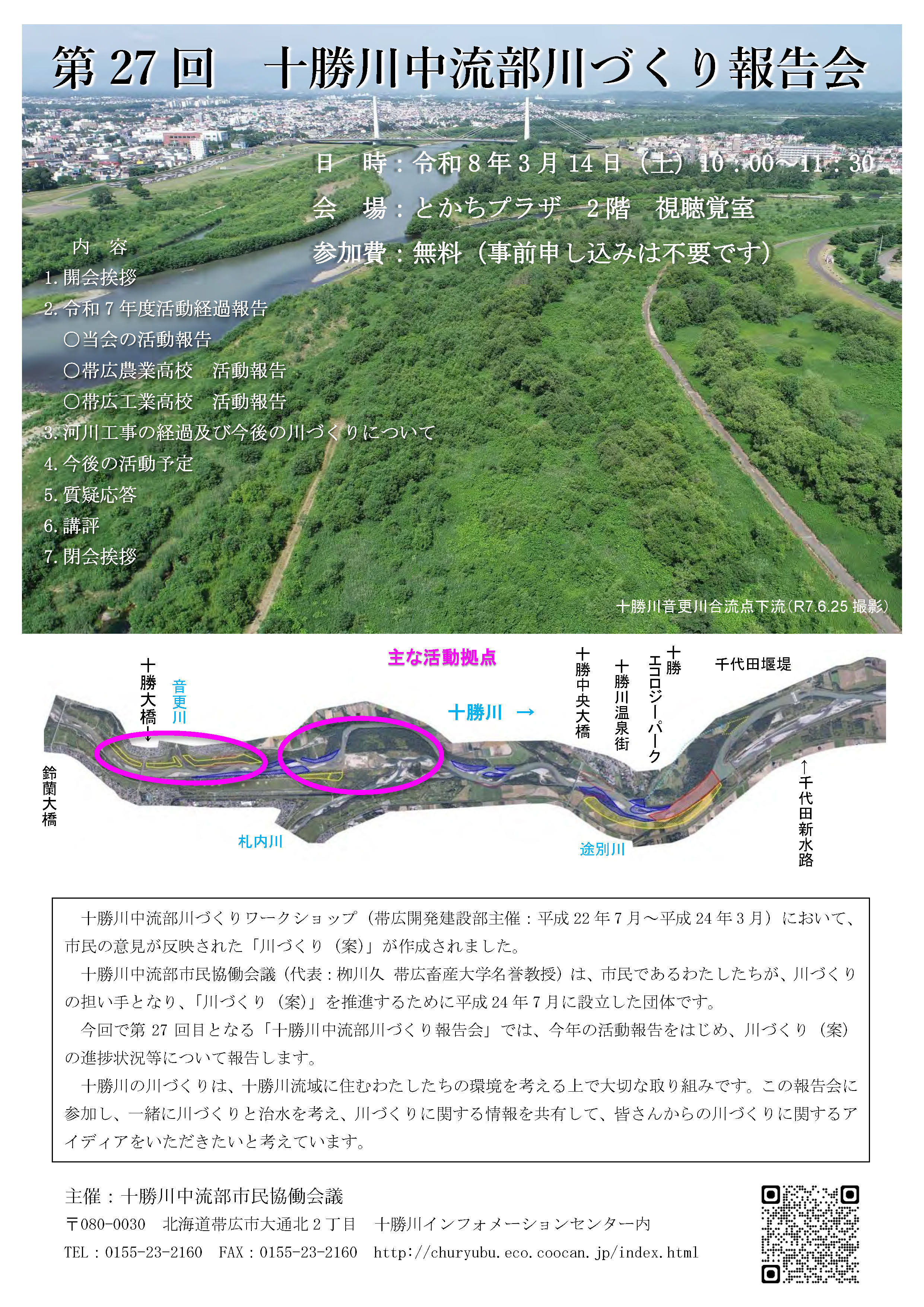 当会議ではこの事業による「十勝川の自然再生」に向けて積極的に取り組んで行くことを、令和6年3月の十勝川中流部川づくり報告会で宣言しています。